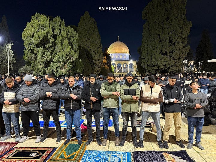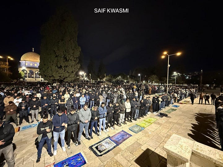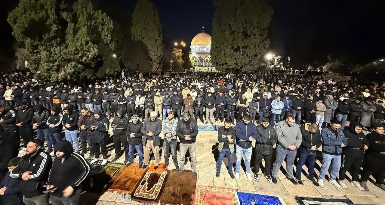 Sekitar 50.000 warga Palestina menunaikan salat isya dan tarawih di Al-Aqsa di tengah pengamanan Israel yang diperketat dan larangan baru terhadap media di Yerusalem yang diduduki