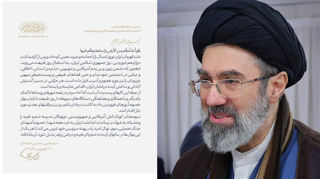 Bangsa Iran yang heroik telah memadukan Nowruz tahun ini dengan semangat epik dan kehormatan. Setelah memperingati 12 Farvardin—Hari Republik Islam Iran—mereka kini bersiap menyambut Hari Alam.
