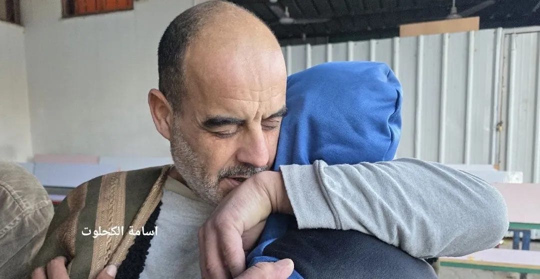 Para tahanan dipindahkan ke rumah sakit di Deir al-Balah setelah dibebaskan dari kamp penahanan Sde Teiman, dengan proses transportasi dikoordinasikan oleh Komite Internasional Palang Merah.