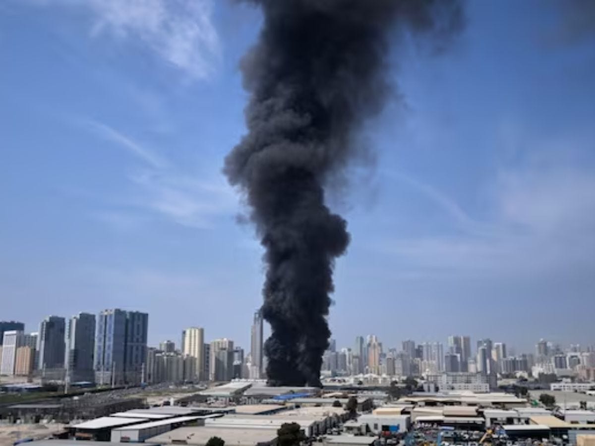 Asap membubung dari kompleks Kedutaan Besar AS di Kuwait setelah serangan drone Iran, saat Teheran menekan aksi pembalasan terhadap agresi AS–Israel.