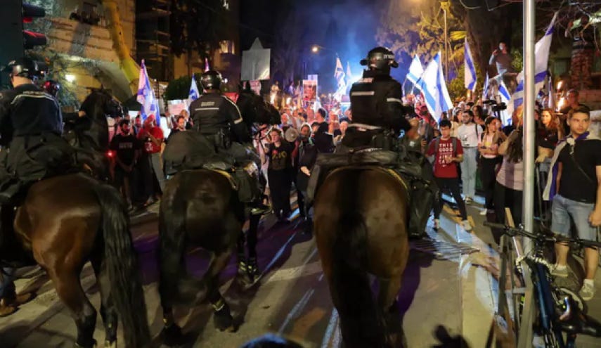 “Setiap pemirsa yang mengikuti berita mungkin mengira bahwa demokrasi di Israel hidup dan berkembang, dengan warga yang bebas memprotes para pejabat terpilih mereka. Namun pada kenyataannya, ketika Yariv Levin (menteri kehakiman) sedang menjalankan kudeta yudisial untuk Netanyahu, para pembawa acara televisi berteriak penuh semangat tentang perang dan secara sengaja mengalihkan perhatian ke Iran.” (FG)