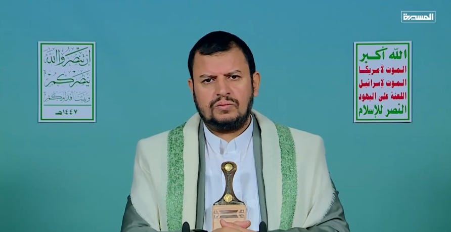 Sayyed al-Houthi memuji Perlawanan Lebanon, khususnya Hizbullah, atas “keteguhan luar biasa dan kekuatan penangkal yang menentukan,” menekankan “persamaan emas” antara Tentara, Rakyat, dan Perlawanan yang telah menjaga kedaulatan Lebanon dan mencegah agresi Israel selama bertahun-tahun.