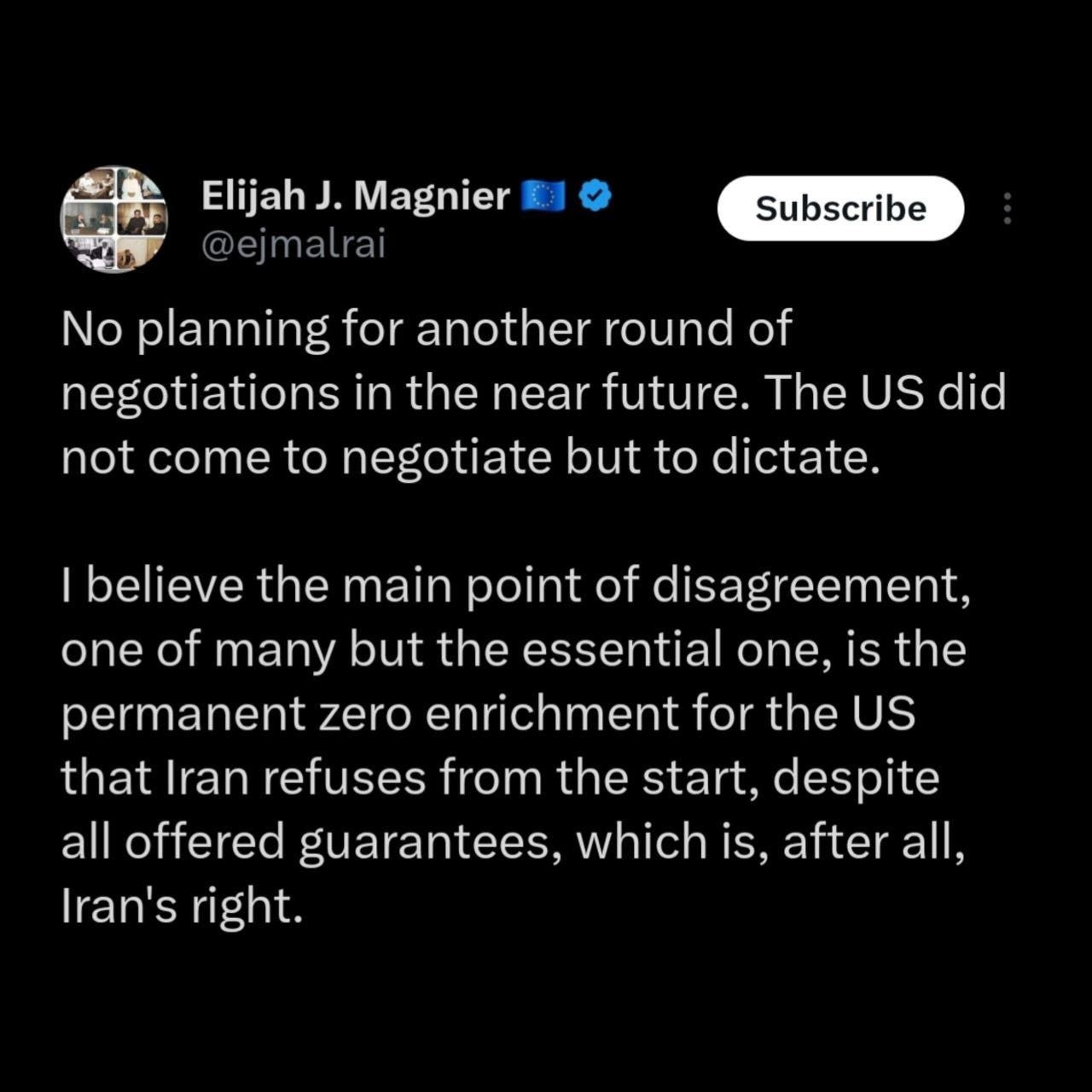 Analis Timur Tengah senior Elijah Magnier menyatakan bahwa Washington tidak datang untuk bernegosiasi, melainkan untuk memaksakan kehendaknya.